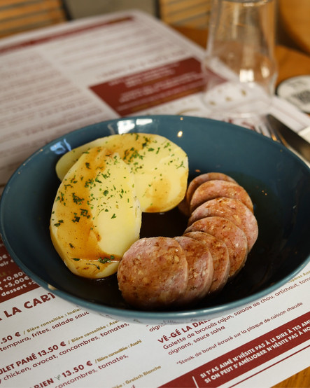 Saucisson lyonnais et pommes de terre vapeur